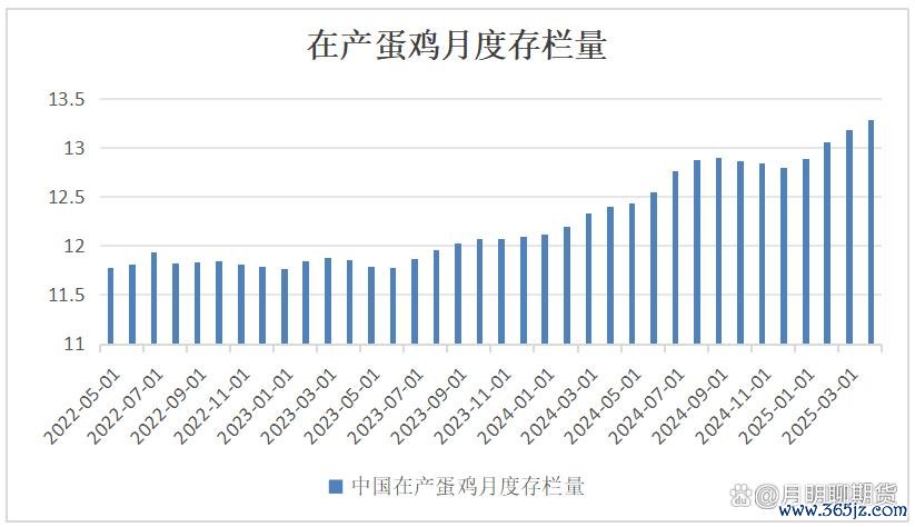 卓创数据显示鸡蛋月度在产存栏为13.29亿只,增加0.11亿只,目前在产存栏处于往年较高水平,意味着鸡蛋供应较充足,近期去产能速度持续较慢,随着新开产存栏不断增加,鸡蛋供应将逐渐增加,预计5月份在产存栏量将继续呈现增加态势。